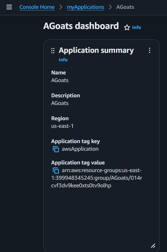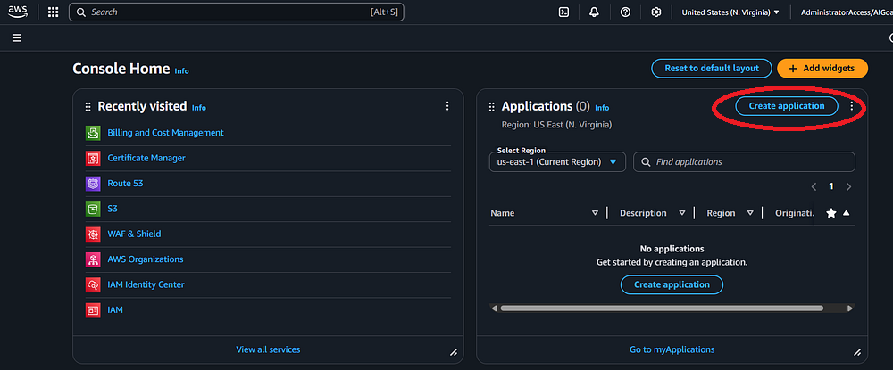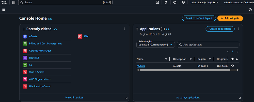 Step 8: If you go back to the AWS Console homepage, you should see your newly created application