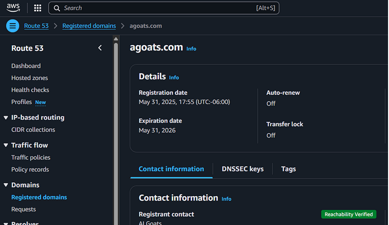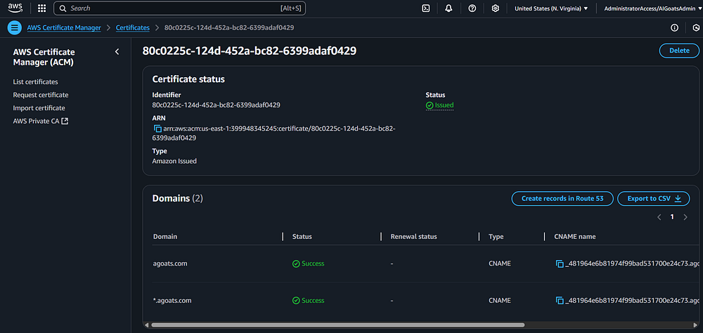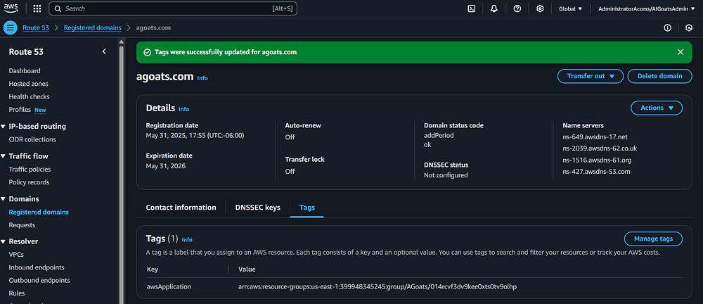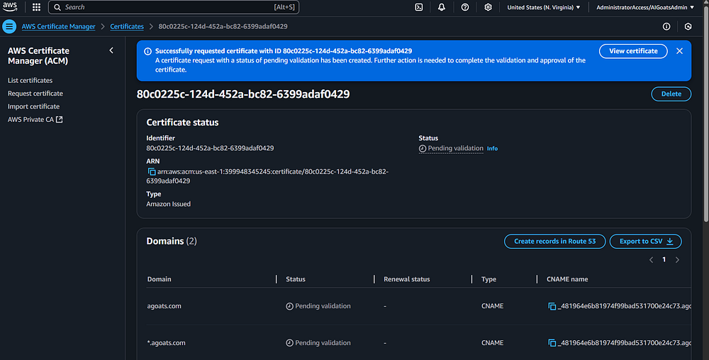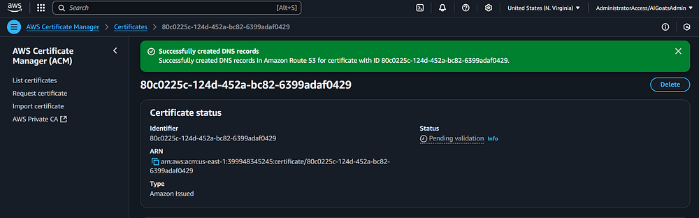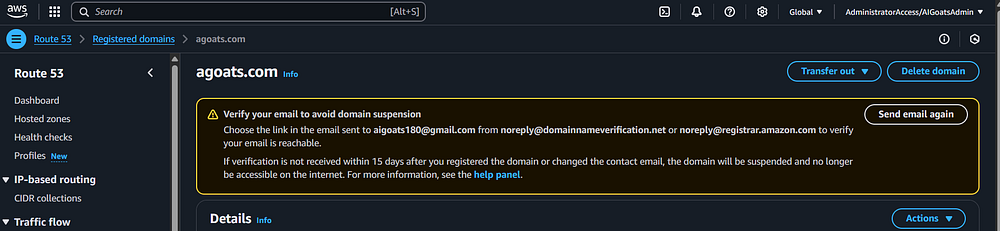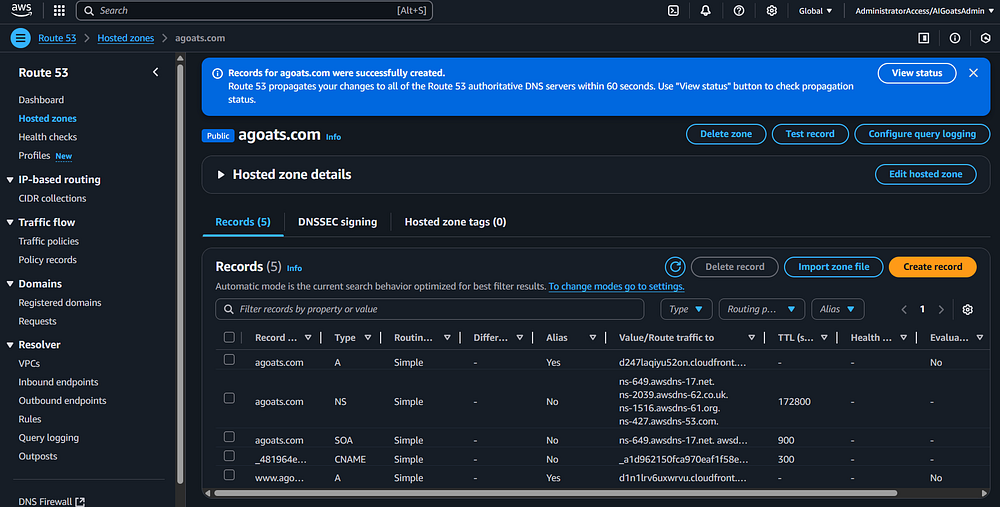 Step 23: You should be taken back to the Route 53 page. You should see a status message indicating