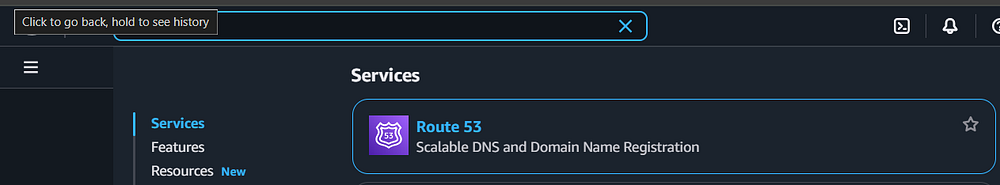 website. Type in "Route 53" into the search box and select "Route 53" when that option comes up.