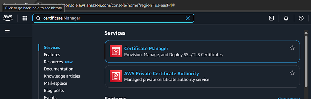 required because we are using CloudFront to enable HTTPS traffic. In the main management console, type