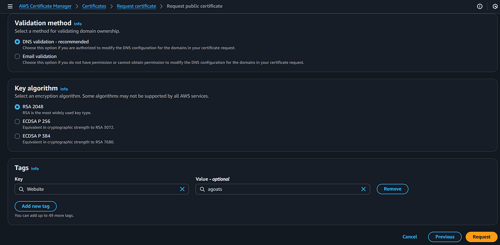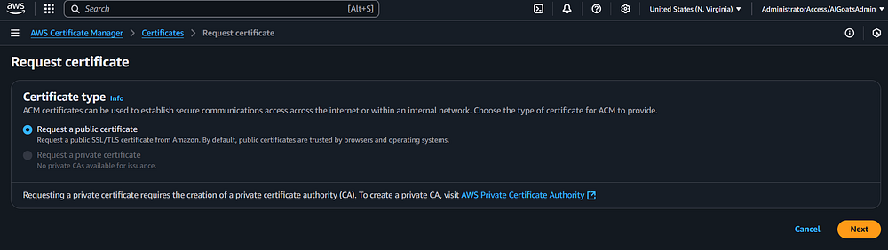 Sub-Section - Get a Public Certificate using Certificate Manager: