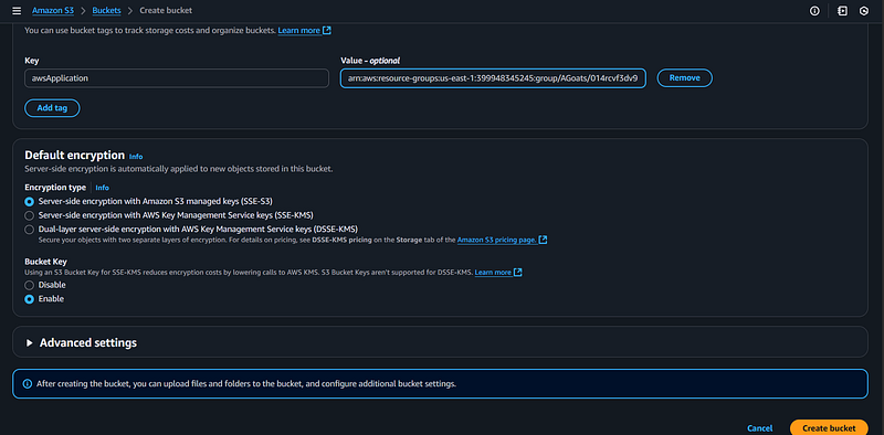 tag value." You will need to use this key and value pair when creating new AWS resources in future steps to