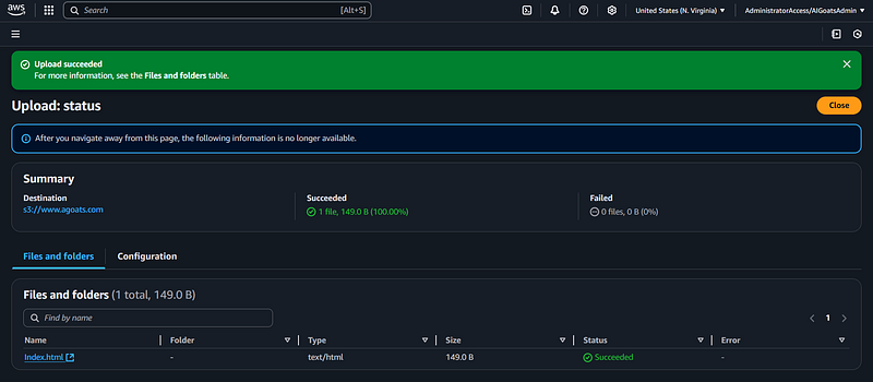 file you uploaded to the S3 subdomain bucket in an earlier step. Note make sure the name is exactly the