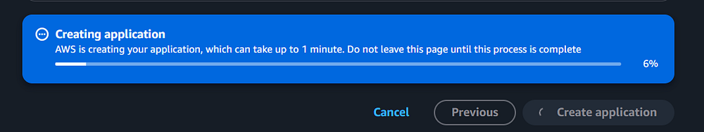 Step 6: A box will appear showing the progress bar to create the application.