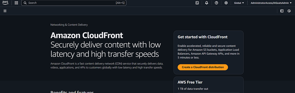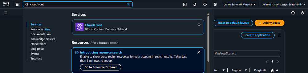 AWS Console Homepage, click on the "CloudFront" option. Note: the AWS Console Homepage saves the most recent