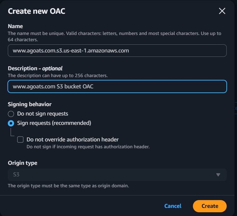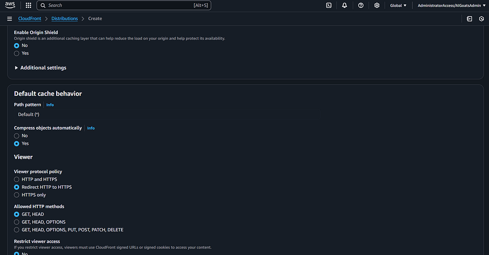 defaults for the other settings. Note that there are additional charges for using Origin Shield.