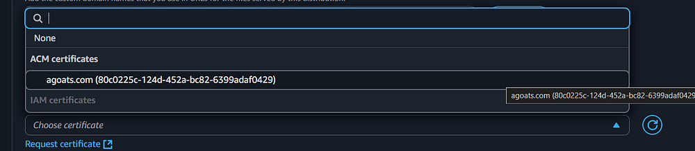 which is the CloudFront distribution you created in previous steps. Choose that distribution and click the
