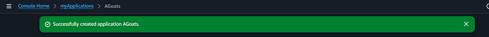 Step 7: You should see a message bar notifying you that the application was created successfully.