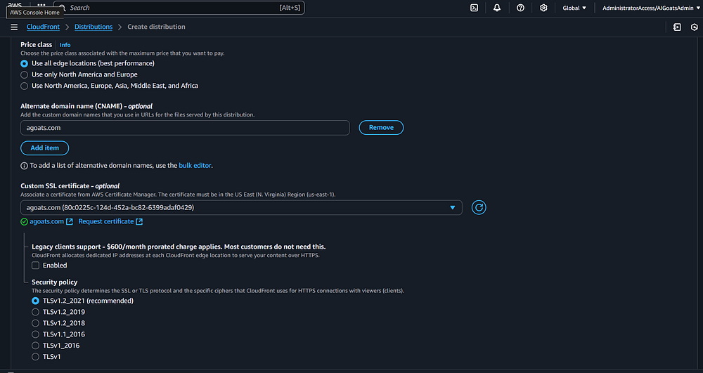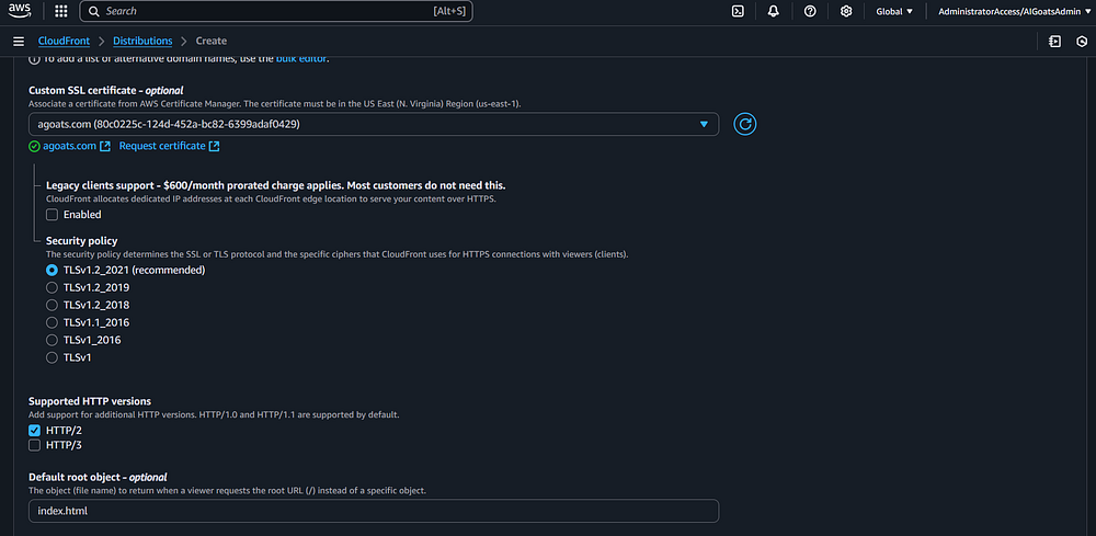 Step 80: Now that you have a CloudFront distribution for the subdomain, you need one for the root