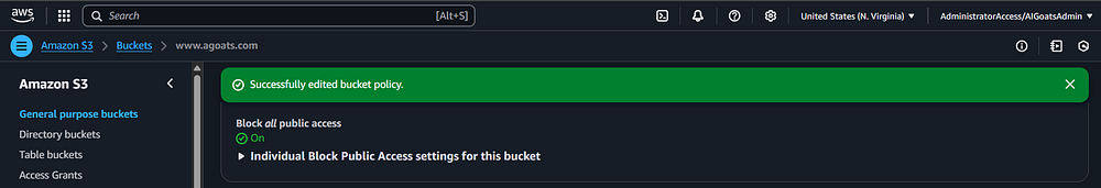 Step 77: You should get a pop up message indicating the bucket policy has been updated.