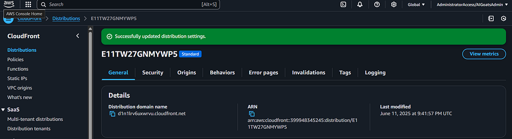 Step 89: As with previous AWS services, you should go into the newly created distribution and add