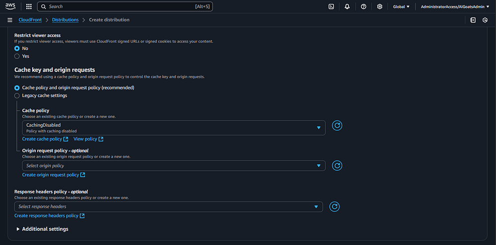Step 83: In the "Cache key and origin requests" section, change the "Cache policy" to