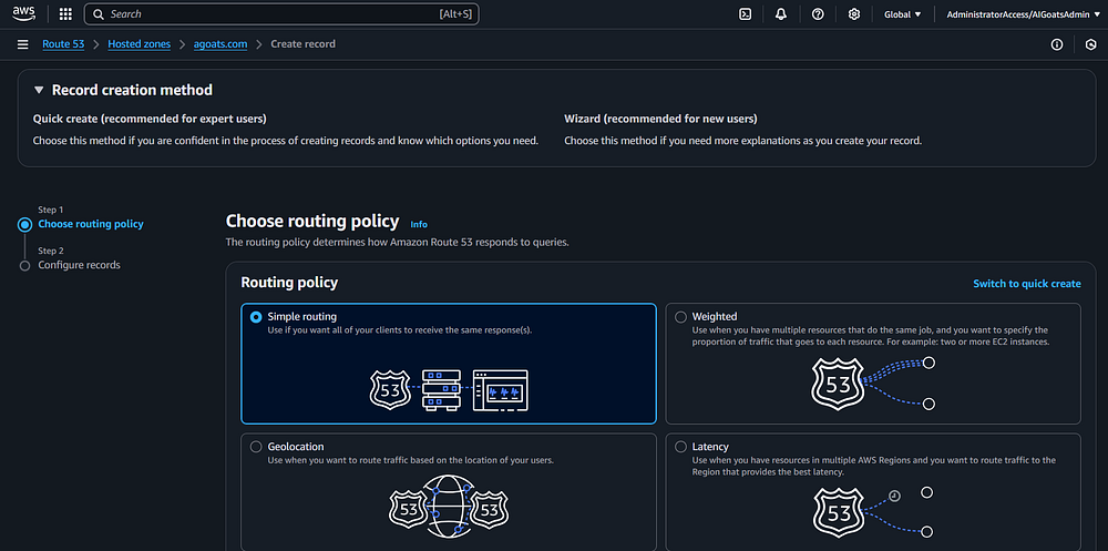 Click that option. Note that these steps assume you purchased the domain name in Route 53 and did not