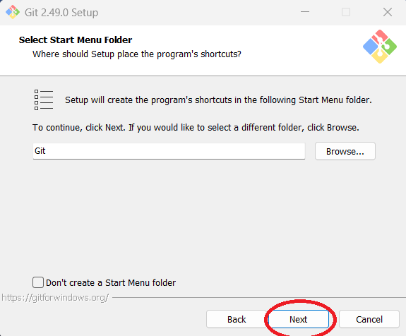 Step 10: You can change the start menu folder or stay with the default configuration. The author used