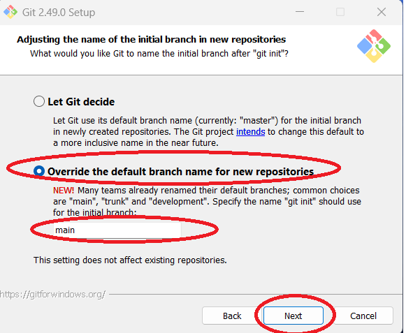 the initial branch name for new repositories, or you may need to override the default branch name and use a