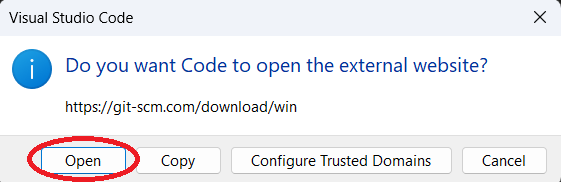Step 3: You may be prompted to allow Visual Studio Code to open the link to the externa website.