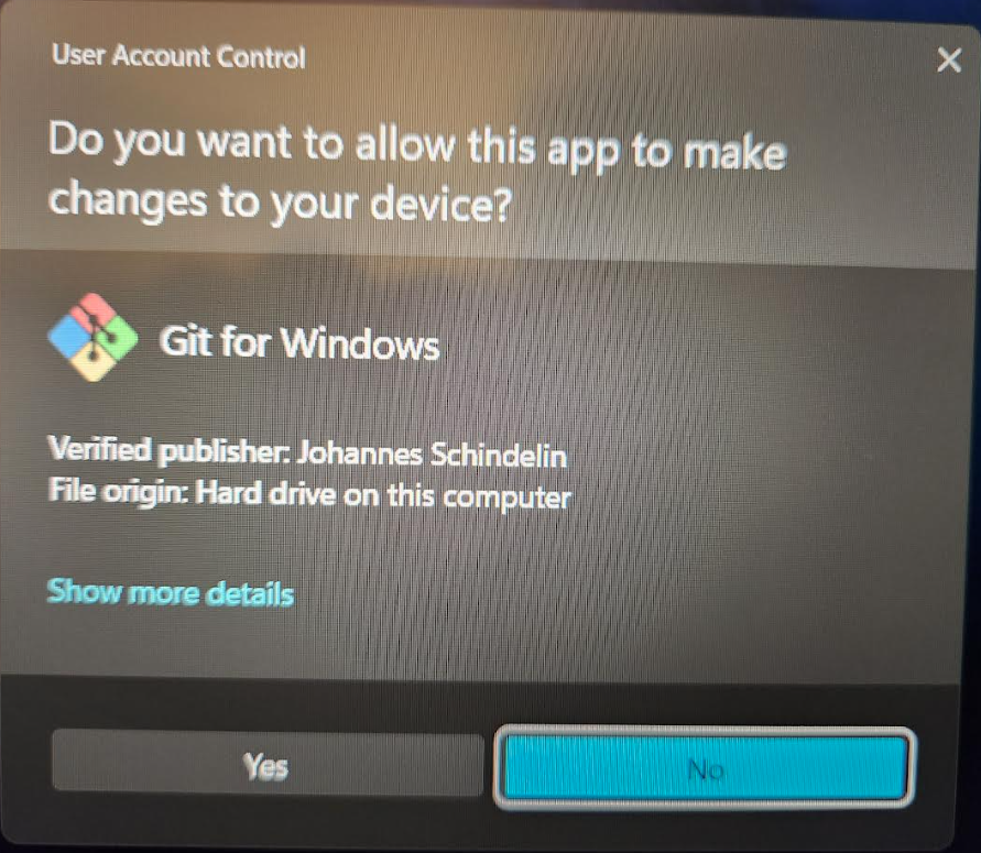 it to install Git. Note it is recommended that you close Visual Studio Code before installing Git, then