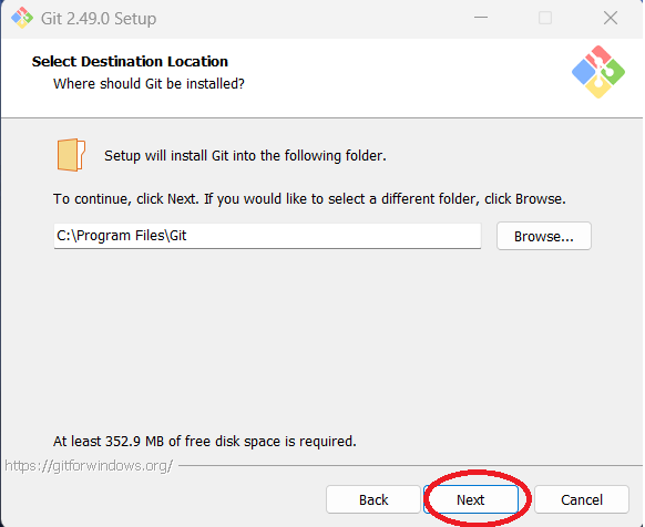 Step 8: You can change the directory where Git will be installed or leave the default. The author