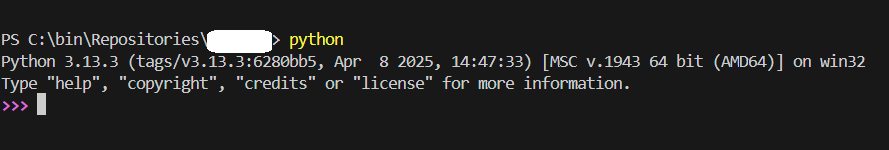 Step 13: Type in "python" and press "Enter." You should see a result similar to the below indicating