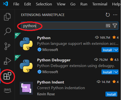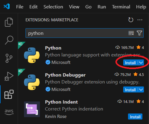 Step 7: Locate the "Python" language support extension from Microsoft and click the "Install" option.